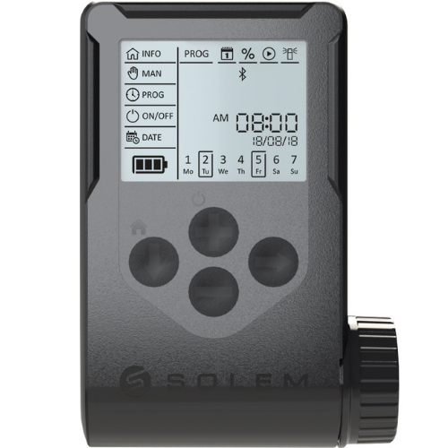 Sulamada teknolojiyi görsellikle buluşturan Solem WooBee, pilli kontrol üniteleri arasında devrim yaratıyor. Klasik kontrol ünitelerinin aksine geniş bir LCD ekrana sahip olan bu seri, programlamayı hem cihaz üzerinden hem de Bluetooth ile akıllı telefonunuzdan yapmanıza olanak tanır. 1, 2, 4 ve 6 istasyon seçenekleriyle her türlü peyzaj ihtiyacına profesyonel cevap verir.